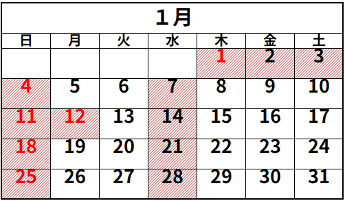 市場がお休みの日 青果部のみ休市 ※赤文字は日曜日又は祝日